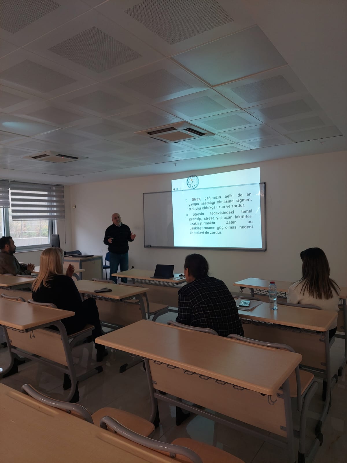 Tarsus Üniversitesi Uygulamalı Bilimler Fakültesi Gümrük İşletme Bölümü tarafından, öğretim elemanlarına yönelik olarak “İş Hayatında Stres Yönetimi” başlıklı eğitim programı düzenlenmiştir. Eğitim, Doç. Dr. Ercan Çiçek tarafından verilmiş ve iş yaşamında stresin kaynakları, stresin bireysel ve kurumsal etkileri, baş etme stratejileri ve psikolojik dayanıklılık geliştirme yöntemleri gibi başlıklar ele alınmıştır. Katılımcılar, akademik çalışma temposunda karşılaşılan stres faktörlerine yönelik uygulamaya dönük öneriler edinme ve deneyim paylaşımı yapma fırsatı bulmuşlardır.